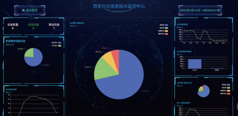 智慧給排水系統平臺以智能感知、物聯(lián)網(wǎng)等信息技術(shù)為核心,實(shí)現對管網(wǎng)、二次供水、排水、污水等業(yè)務(wù)的協(xié)同化管理,通過(guò)水量監測分析實(shí)現定時(shí)定向排漏,定位漏水點(diǎn),解決跑、冒、滴、漏等問(wèn)題,并對水務(wù)信息進(jìn)行統計分析,合理調配數字園,實(shí)現給排水工程的系統化、智能化、便捷化。